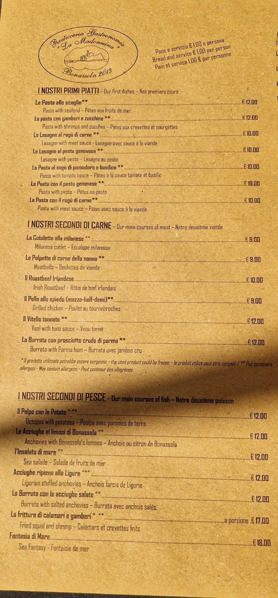 Rosticceria Gastronomia La Madonnina Menu
